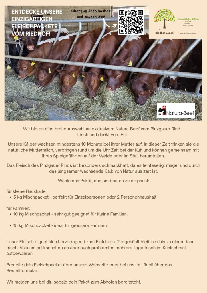Fr. 180.00  für ein   5 kg ( nur für 2 Personen Haushalt) Mischpaket Pinzgauer Natura Beef